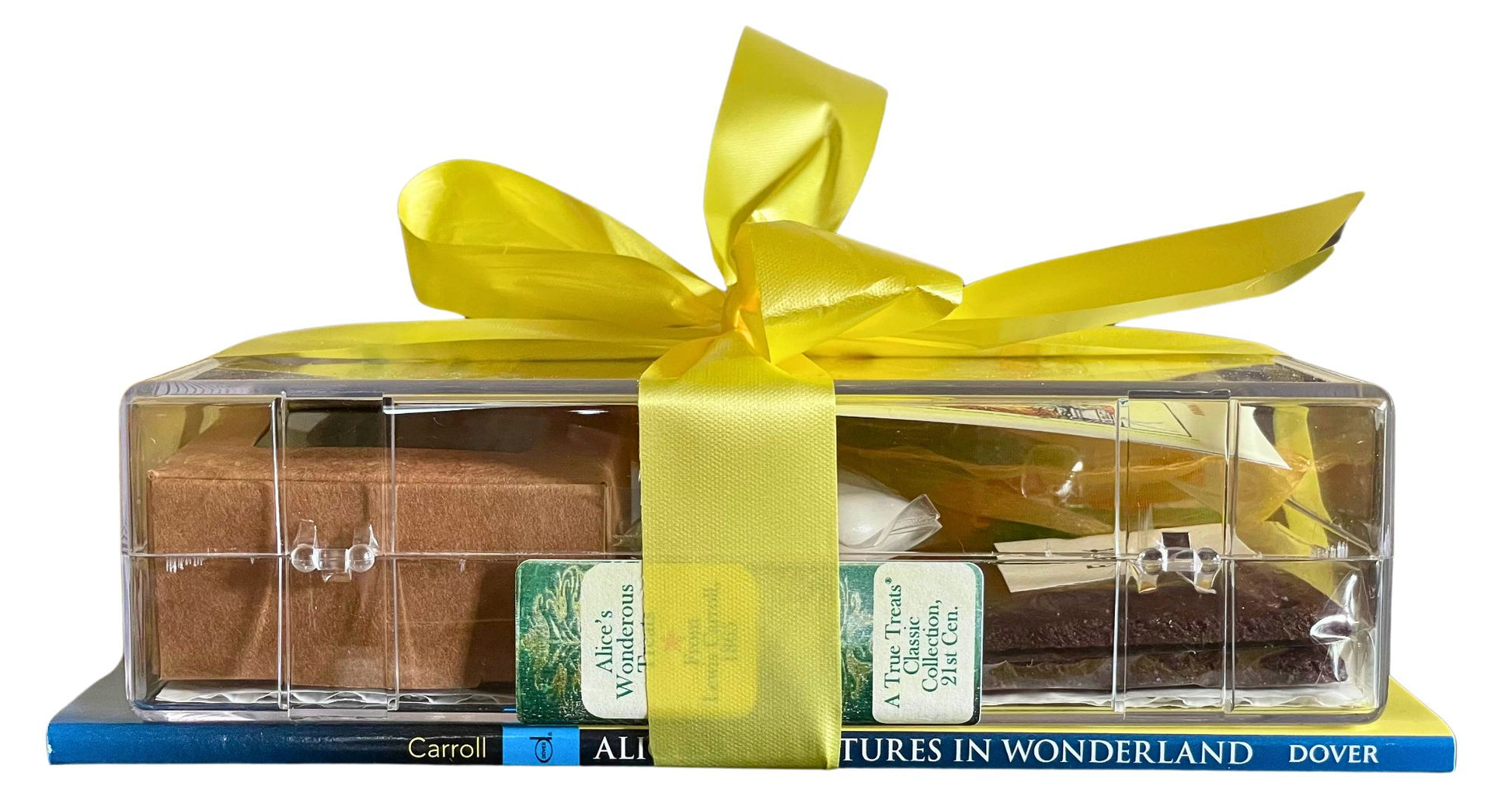 The Alice in Wonderland lit box was created by True Treats’ founder Susan Benjamin, a scholarly researcher of candy and sweets, a former professor of literature and writing, and author of numerous works of fiction.