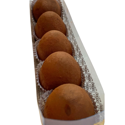 This holiday, savor the rich and intriguing chocolate of an early truffle, made in France in the mid-1800s. Named for the prized mushroom that it once resembled. These handcrafted truffles – the stuff of courtship in Victorian times – are filled with chocolate ganache with a cacao dusting and a tag describing the history. The perfect complement to love and a luxurious treat for yourself. Five pieces in a truffle box.