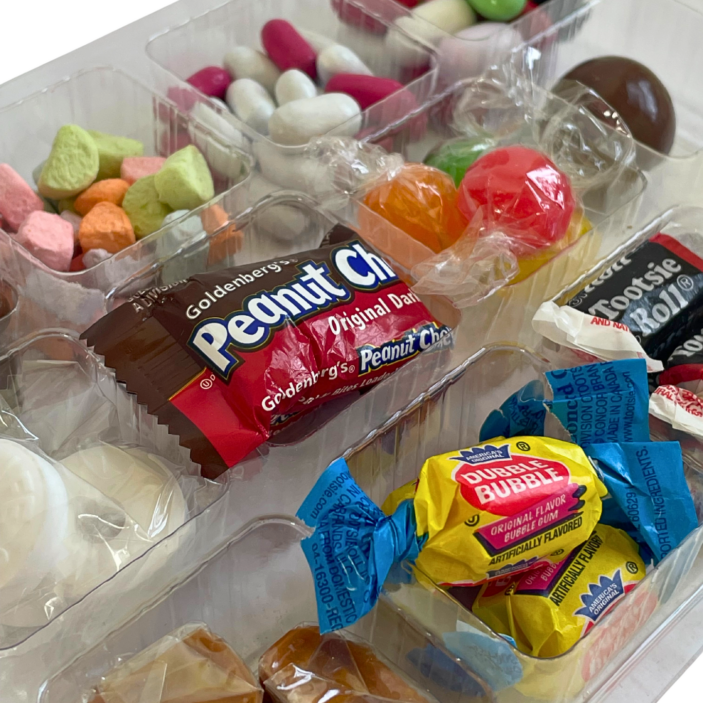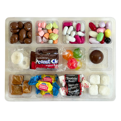 Sour Balls(Sugar, Corn Syrup, Citric Acid, Artificial Flavors, Artificial Colors: FD&C Red #40, Yellow #5 and #6, Blue #1), coloring), Charms (Sugar, corn syrup, citric acid, artificial flavors, artificial colors (including FD&C Red 40, FD&C Blue 1), and turmeric coloring. Milk and soy may be present) Malted Milk Balls( Sugar, Cocoa Butter, Chocolate Liquor (Processed with Alkali), Milk, Nonfat Milk, Butterfat, Soy Lecithin, Salt, Natural Vanilla Flavor, Corn Syrup, Hydrogenated Palm Kernel Oil, Cocoa Powder, Whey Powder, Whey, Whey Protein Concentrate, Malted Barley, Wheat, Wheat Gluten, Sodium Bicarbonate, Natural and Artificial Flavors, Palm Kernel Oil, Cocoa, Water, Gum Arabic, Confectioners Glaze, Modified Tapioca Starch, Coconut Oil, Canola Oil, Malt Extract, Cocoa Mass, Mono and Diglycerides), Chewing Gum ( Dextrose,Corn Syrup(Glucose),Gum Base,Sugar,High Fructose Corn Syrup,Corn Starch,Artificial Flavor,Artificial Colors(FD&C Red 3,Red 40 Lake),BHT(To Maintain Freshness), Candy Bar(Corn Syrup , Sugar , Partially Hydrogenated Vegetable Oil , Palm Kernel Oil , Palm Oil , Soybean Oil , Cottonseed Oil , Nonfat Dry Milk , Cocoa , Lactose , Milk Protein Concentrate , Egg Albumen , Artificial Flavor , Soya Lecithin , Soya Protein , Salt), Tootsie Rolls(Sugar, Corn Syrup, Palm Oil, Condensed Skim Milk, Cocoa, Whey, Soy Lecithin, Artificial and Natural Flavors), Licorice Pastels(Sugar, Wheat, Iron, Niacin, Thiamin, Riboflavin, Folic Acid, High Fructose Corn Syrup, Sugar, Modified Food Starch [Corn], Water, Glycerine, Licorice Extract, Palm Oil, Salt, Soy Mono- and Diglyceride, Anise, Potassium Sorbate, Yellow 5 Lake, Yellow 6 Lake, Red 3, Blue 2 Lake, Blue 1 Lake, Red 40 Lake, Yellow 5, Red 40, Blue 1, Titanium Dioxide, Artificial Flavor, Tapioca Dextrin, Carnauba Wax, Confectioners Glaze), Bridge Mix (Pure Milk Chocolate, Sugar, Cocoa Butter, Milk, Cocoa Mass, Soy Lecithin, Vanilla, Confectioner\'s Glaze, Gum Arabic, Chocolate Liquor (processed with Alkali), Raisins (less than 1% Sunflower Oil), Dry Roasted Peanuts, Whole Dry Roasted Almonds), Sugar Cubes(Pure cane Sugar, Lifesavers (Stearic Acid, Sugar, Corn Syrup, Artificial Flavor Sorbitol)