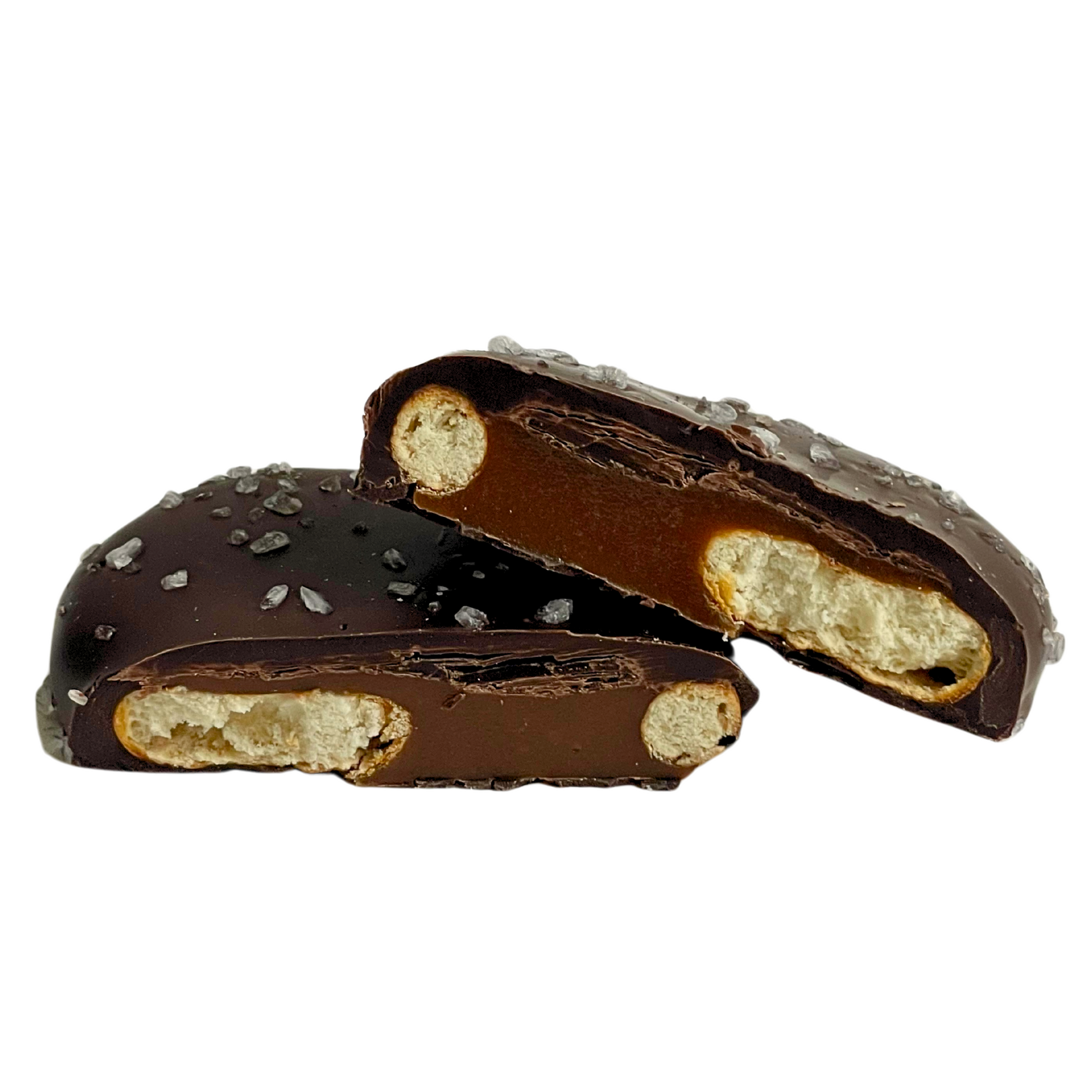This dark chocolate covered pretzels offer the best of three worlds. One is chocolate - the nation's favorite type of candy. One is caramel - the OTHER favorite candy. Both are made with original recipes passed down in the family for generations. Last are pretzels - one of the world's favorite snacks, enjoyed many speculate, since the 700s. comes with three pretzels. How can you help but enjoy?