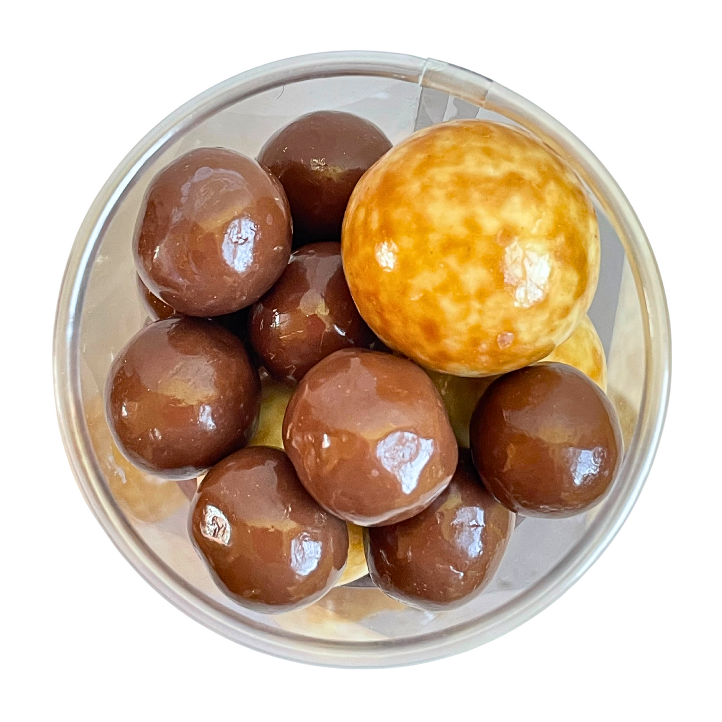 Malted milk ball lovers! Discover our Classic and Cosmic Malted Milk Ball selection! Two varieties of malted milk where every bite tells you why malted milk has a unique place in candy history…. First there’s the classic malted milk balls, with a delightfully smooth milk shell and a crispy malted milk center (which has nothing to do with milk and is all about crunch!) The texture, and sweet chocolate flavor has made malted milk balls a favorite for over 100 years. Then there’s the COSMIC variety. Supersize malted milk balls layered with dark, milk, and white chocolate, with a marbled finish! A true delight!