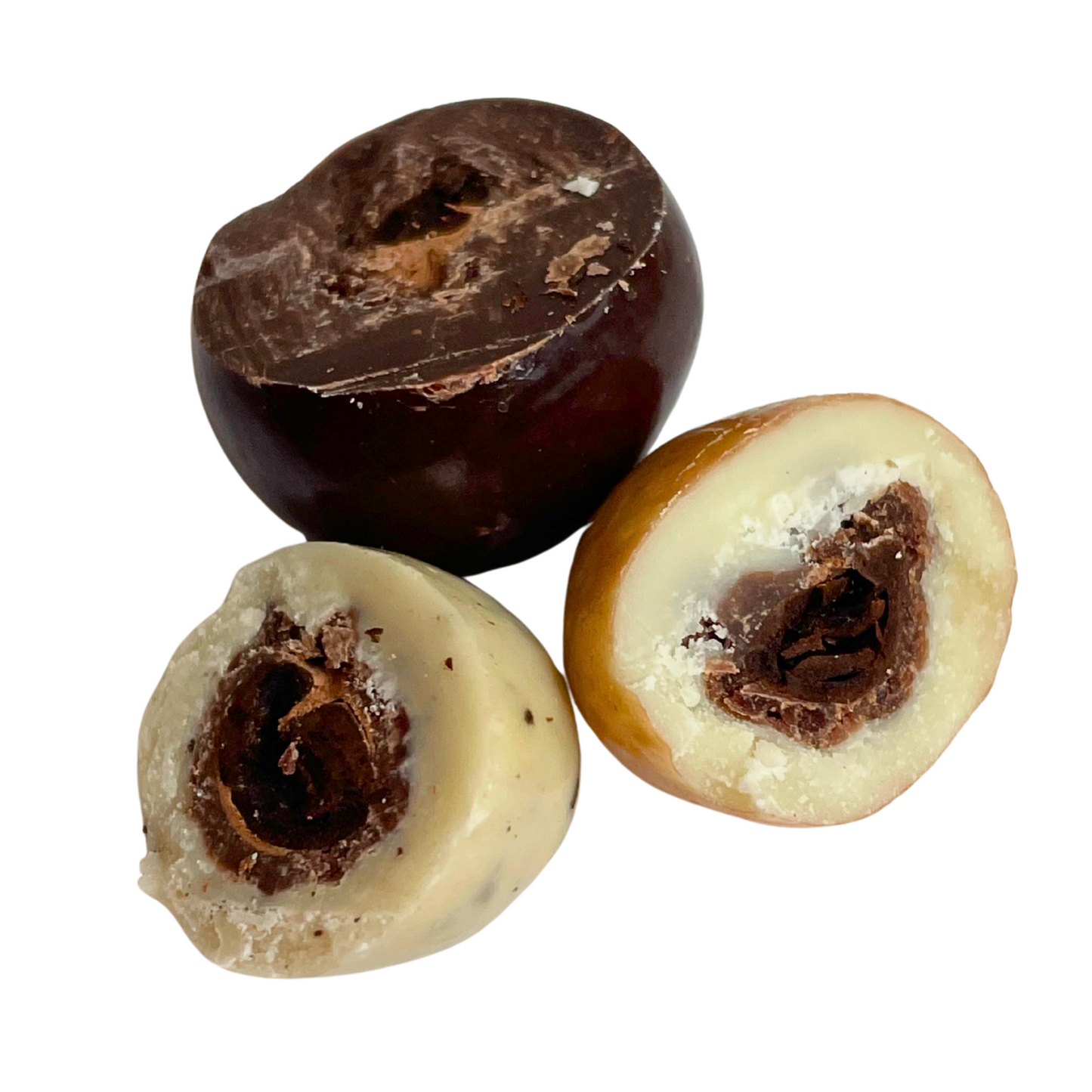 The origin of coffee may have started in Ethiopia, where a goat herder noticed his goats grew energetic after eating beans from a tree. He tried the berries. Tasty. Yes. And energizing. In another version, a Yemenite Sufi mystic encountered birds eating berries with great enthusiasm and delight. He tried the berries. Same result. Whatever the origin, coffee appeared throughout the world, including North America, where Colonists used it as a substitute for British tea and, flash forward a few centuries, and coffee breaks were a mainstay of the working world. Explores to the North and South Poles had a supply of coffee and Revolutionary War and Civil War soldiers crushed and boiled coffee from their rations. More to the point, soldiers, explorers and people-on-the-go ate coffee beans, often because they didn’t have the bandwidth or desire to prepare cup. Besides, eating chocolate made for a delicious topping on finely crafted backed goods and when engulfed in chocolate.